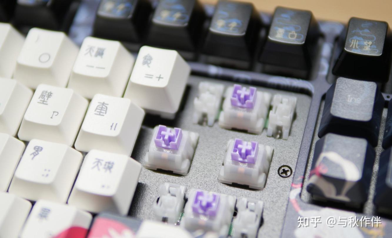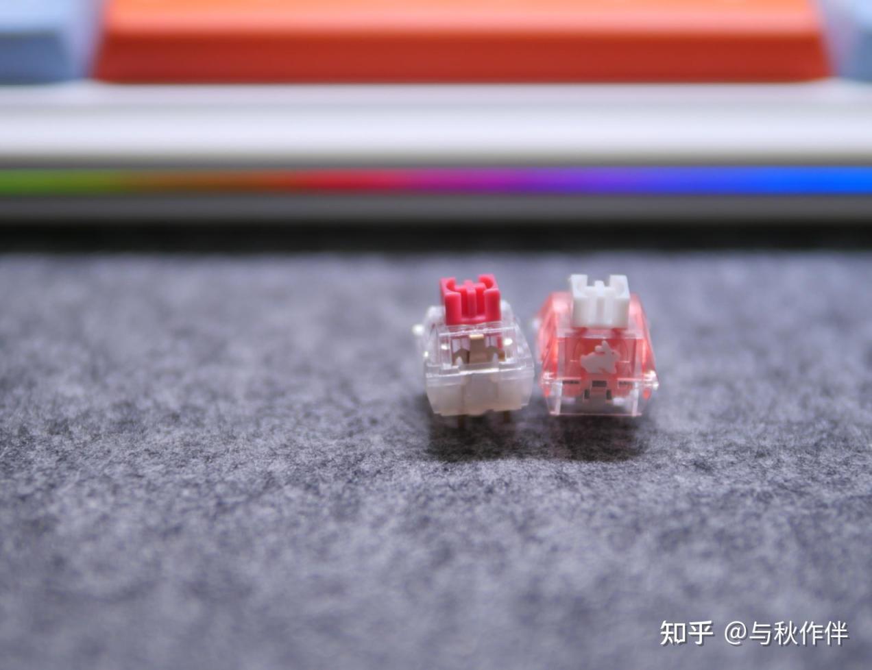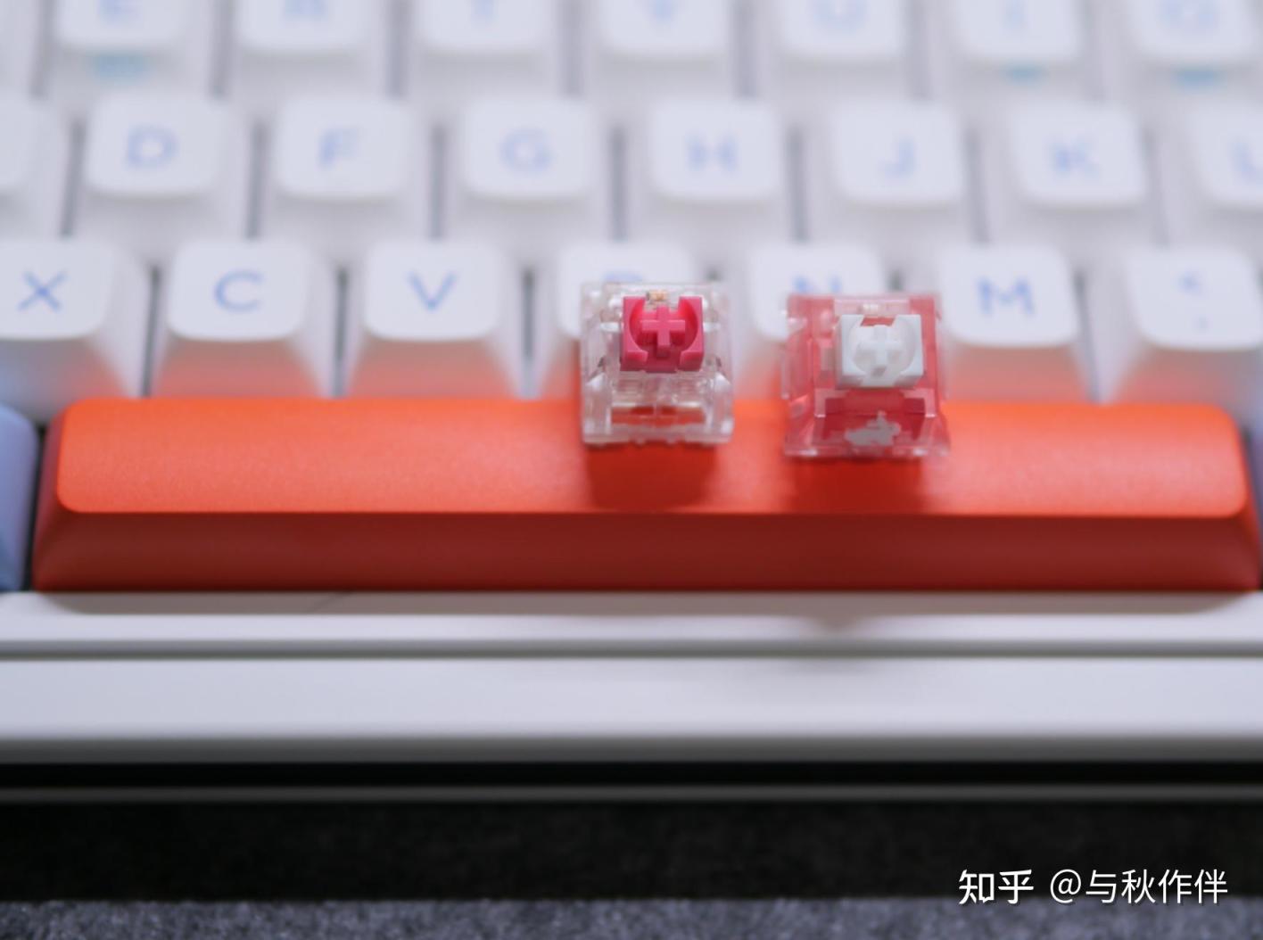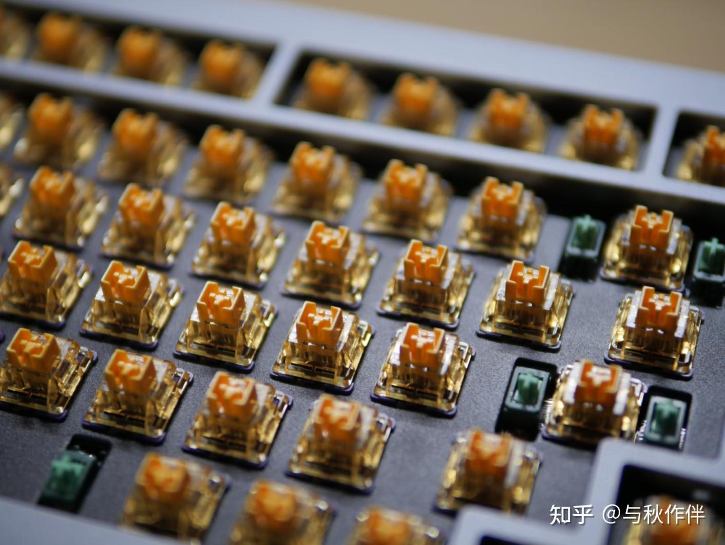 有声大段落轴也就是类青轴,现在主要被凯华的扭簧发声段落轴统治,它和传统有声段落轴结构上有点小小的区别,声音更像按动圆珠笔的声音,段落感更明显,按起来更解压。主流的记住凯华的知夏轴和极地狐轴就可以了,量产键盘里,选这两款轴足够让你完整体验段落轴的神韵和快感。