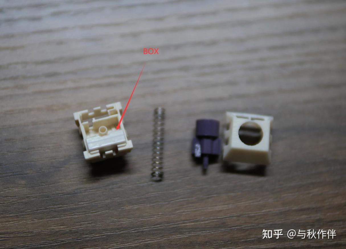 第二个问题影响轴体的寿命,当然这只是一个因素,事实上塑料因为韧性和以及稳定性好,只要不是用料太差,一般不是影响轴体寿命的决定性因素,轴体失灵普遍是金属部分氧化生锈或者金属疲劳导致弹片回弹不灵敏导致的。所以凯华推出了BOX结构,改变了cherryMX轴金属弹片的形式,把它变形后又放在了一个塑料空间内,在针脚和金属之间又加了一个小的塑料块传导触发。因为金属部分更封闭,加上接触形式的改变,BOX结构的轴体寿命更长,顺便也一定程度改善了后面的第四个问题,弹片抖动的影响会变小。