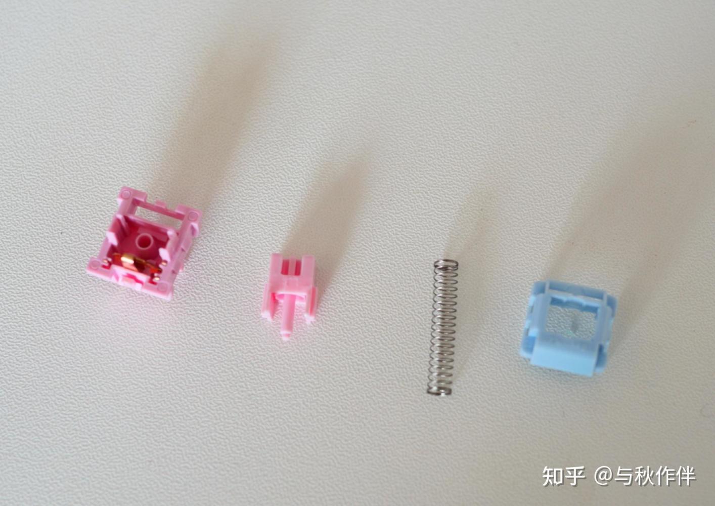 除了单段弹簧也有轴体使用双段弹簧,比起单段,双段弹簧具有两个不同的压力分区,按压过程中会有一定的压力曲线变化,普遍回弹更快更跟手,甚至个别还有三段的。但是双段弹簧的弹簧音会比单段弹簧更明显,而且也有人不喜欢双段弹簧压力变化的手感,算是有利有弊。