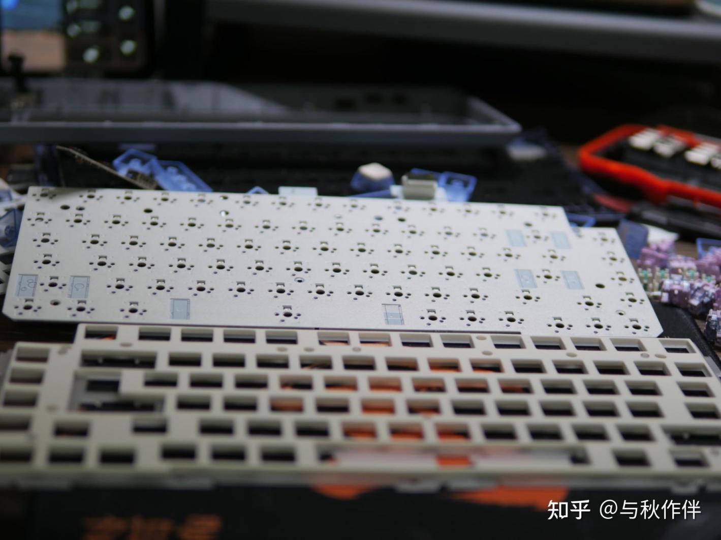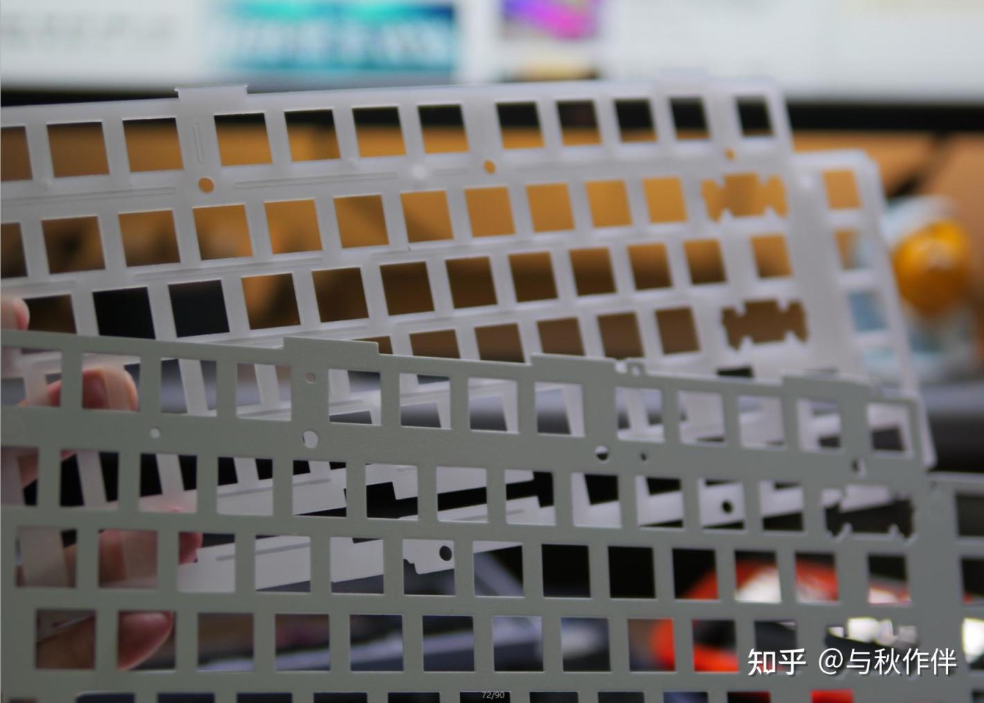 目前国产机械键盘中最常见的就是PC定位板,然后金属定位板依然还有一定市场,再就是去年以来玻纤定位板越来越多。其中同样不开槽的情况下相同厚度PC最软,但是玻纤板可以极限开槽,开得比较猛的玻纤板比普通PC板更软。定位板的软硬只是一种特性,并不能完全反应键盘的优劣。现在比较流行比较软弹的机械键盘内胆结构,因为打字声音好,同时不容易疲劳,缺点是游戏时大力按压会有一定的卸力。