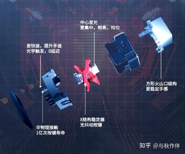 所以这个时候大家发现了一个问题,金属弹片作为机械轴的触发结构,有这么多的缺点,是不是能够换个触发方式呢?所以,前面提到的光轴、磁轴、静电容轴就来了。