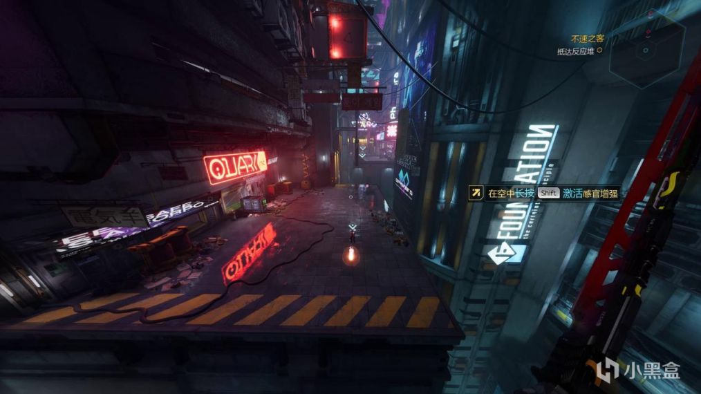 游戏的美术依然是本作的一大亮点,达摩塔内五彩斑斓的霓虹灯、高不可攀的大楼、科技感十足的电力机关等等,这些随处可见的赛博朋克元素给玩家提供了良好的代入感,动感十足的电子乐和高速闪现的画面融为一体,在探索的过程中完全不会有违和感。