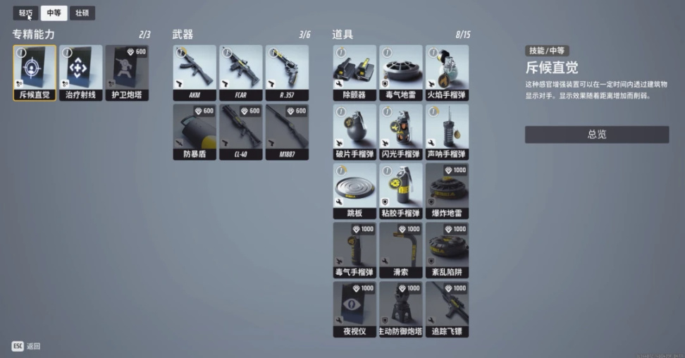 並且值得注意的是,主武器在對局途中並不能自由更換,只能從攜帶的主武器和一個預備欄位中選擇其一,技能則只能選擇一種,相當於製作組變相要求玩家根據團隊配置,在開局就確定本場比賽的作戰風格。這種限制並沒有必要,希望製造組後期能夠開放更多的編輯欄位。