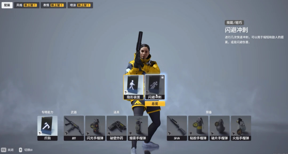 輕巧標配抓鉤技能,遊玩點數解鎖閃避衝刺和隱身,主打一個隱蔽作戰快速轉移。