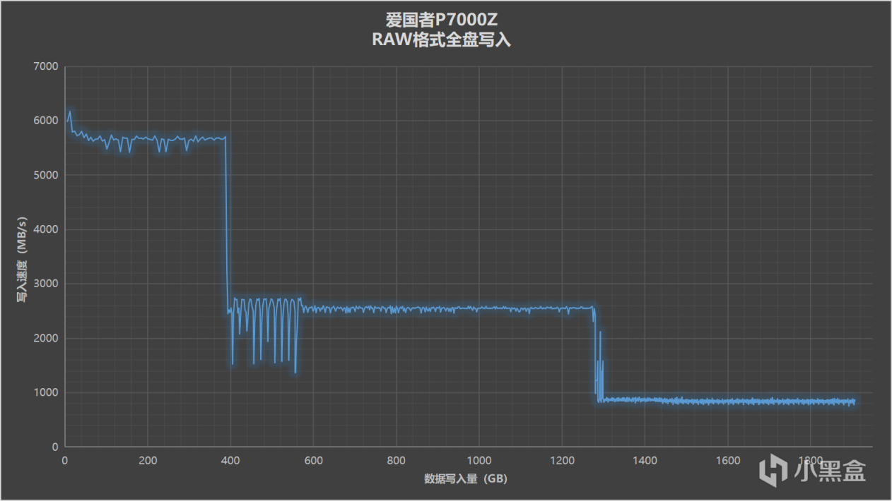 所以说,宏碁掠夺者GM7 2T使用的X3-9060颗粒在从TLC直写速度方面的优势实在是太大了,甚至个人觉得这个性能完全可以抛弃SLC Cache机制,纯粹使用TLC颗粒的直写速度了。