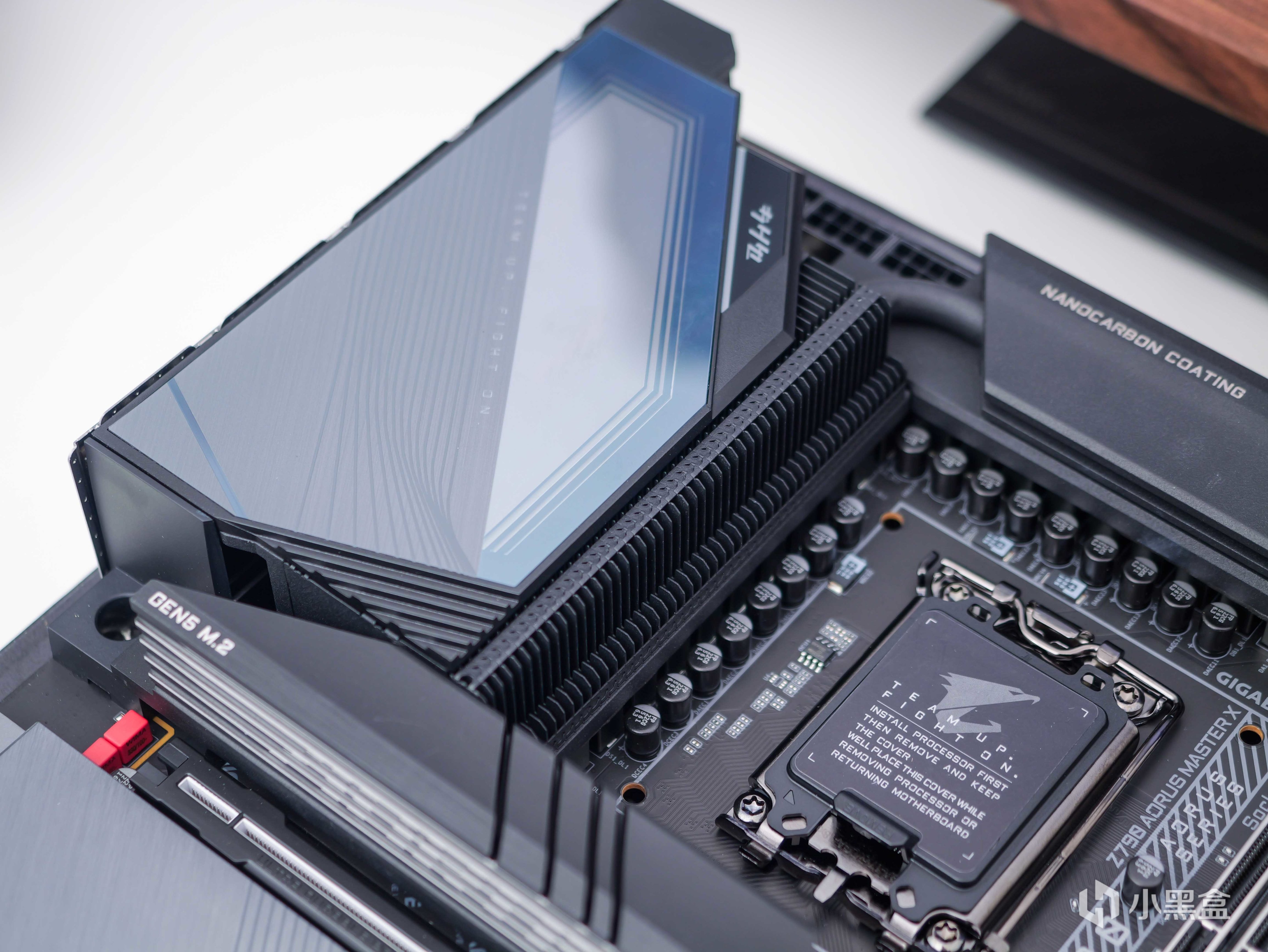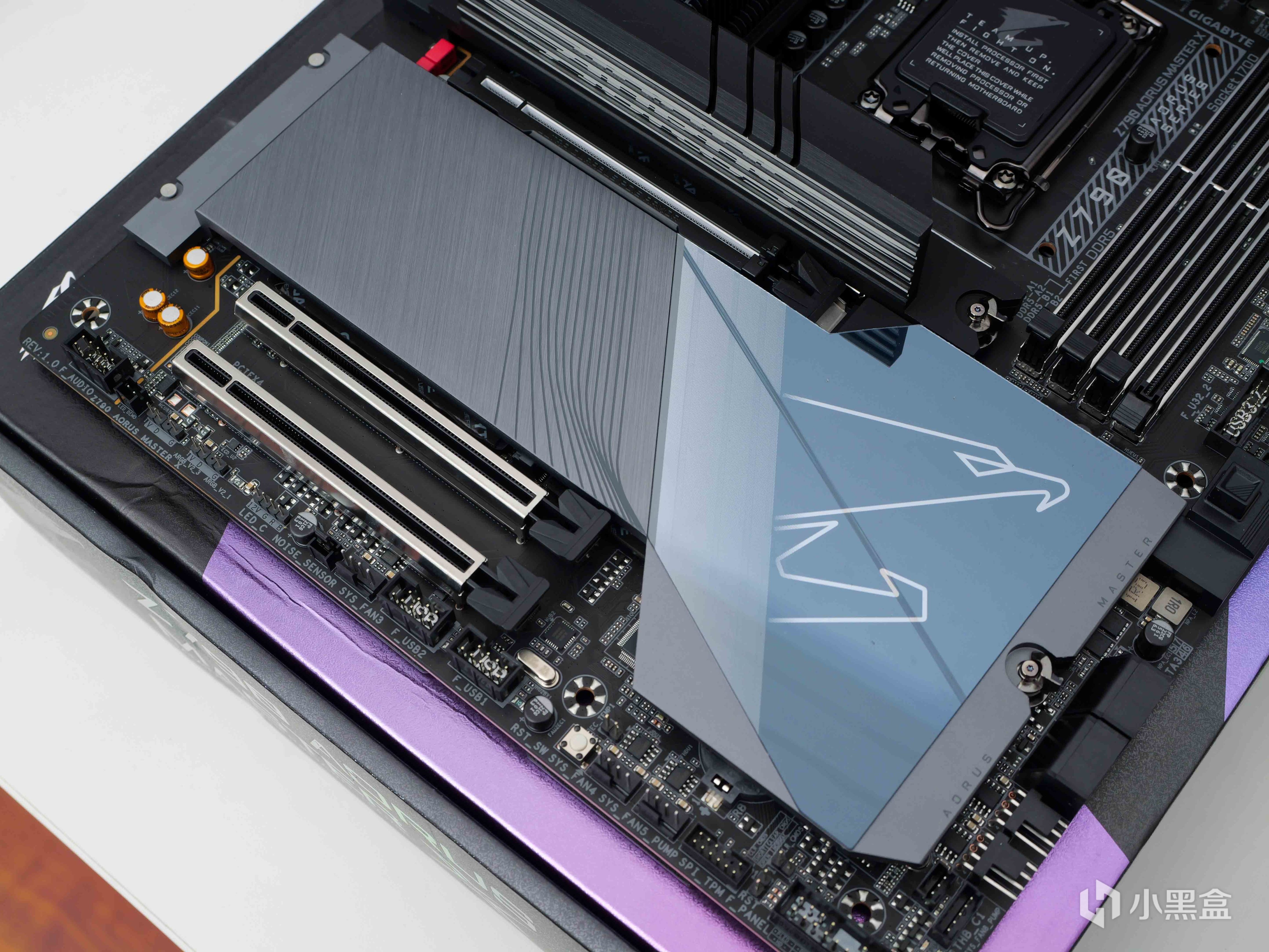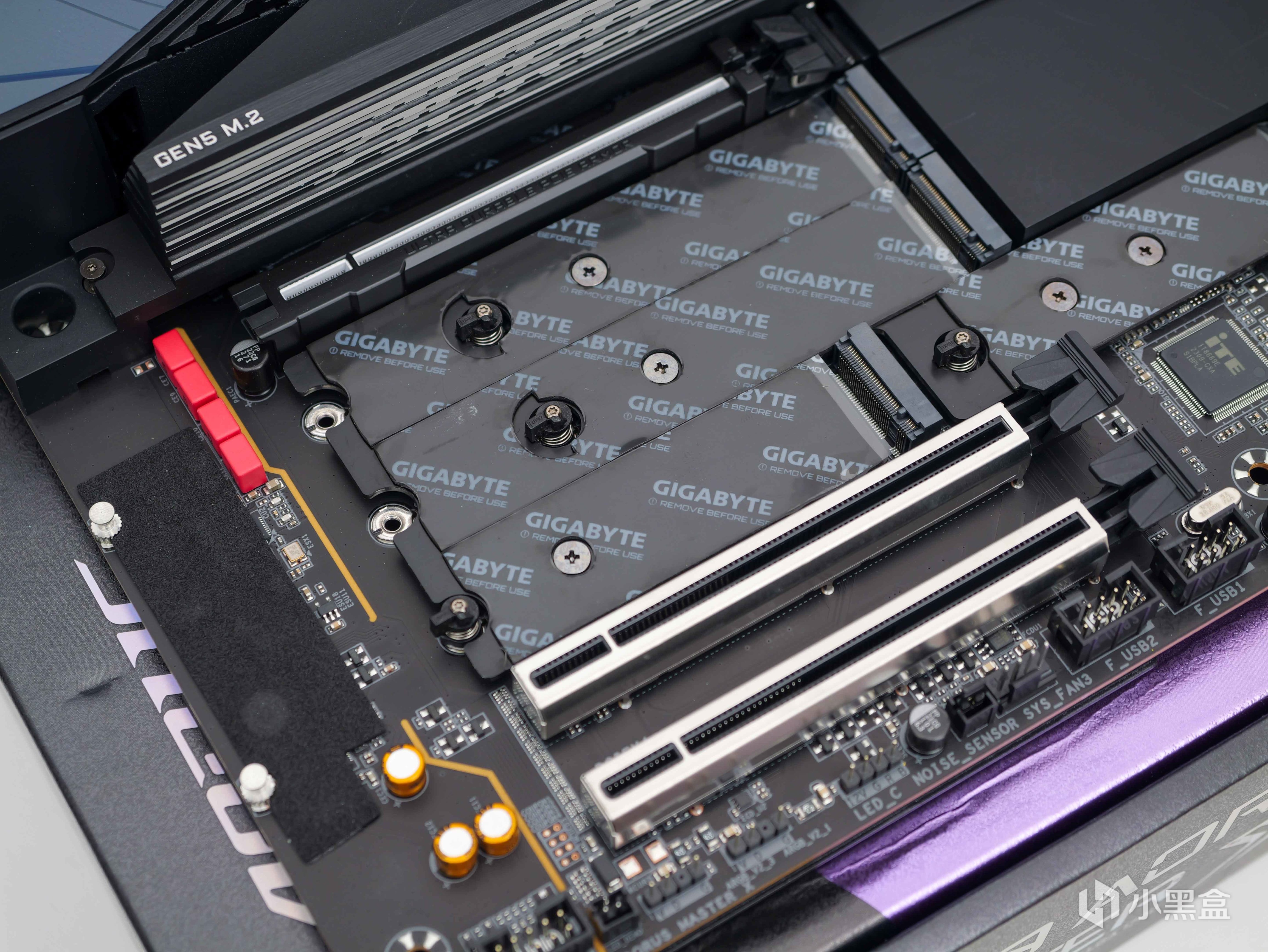技嘉Z790新超级雕X主板配备了5个M.2 SSD插槽,并且所有槽位都由金属散热装甲覆盖。其中单独靠近CPU的M.2插槽为PCIe5.0接口,完美支持下一代PCIe5.0 SSD,并且散热装甲规模很大,可以避免SSD在高负载使用过程中发生过热降速问题。