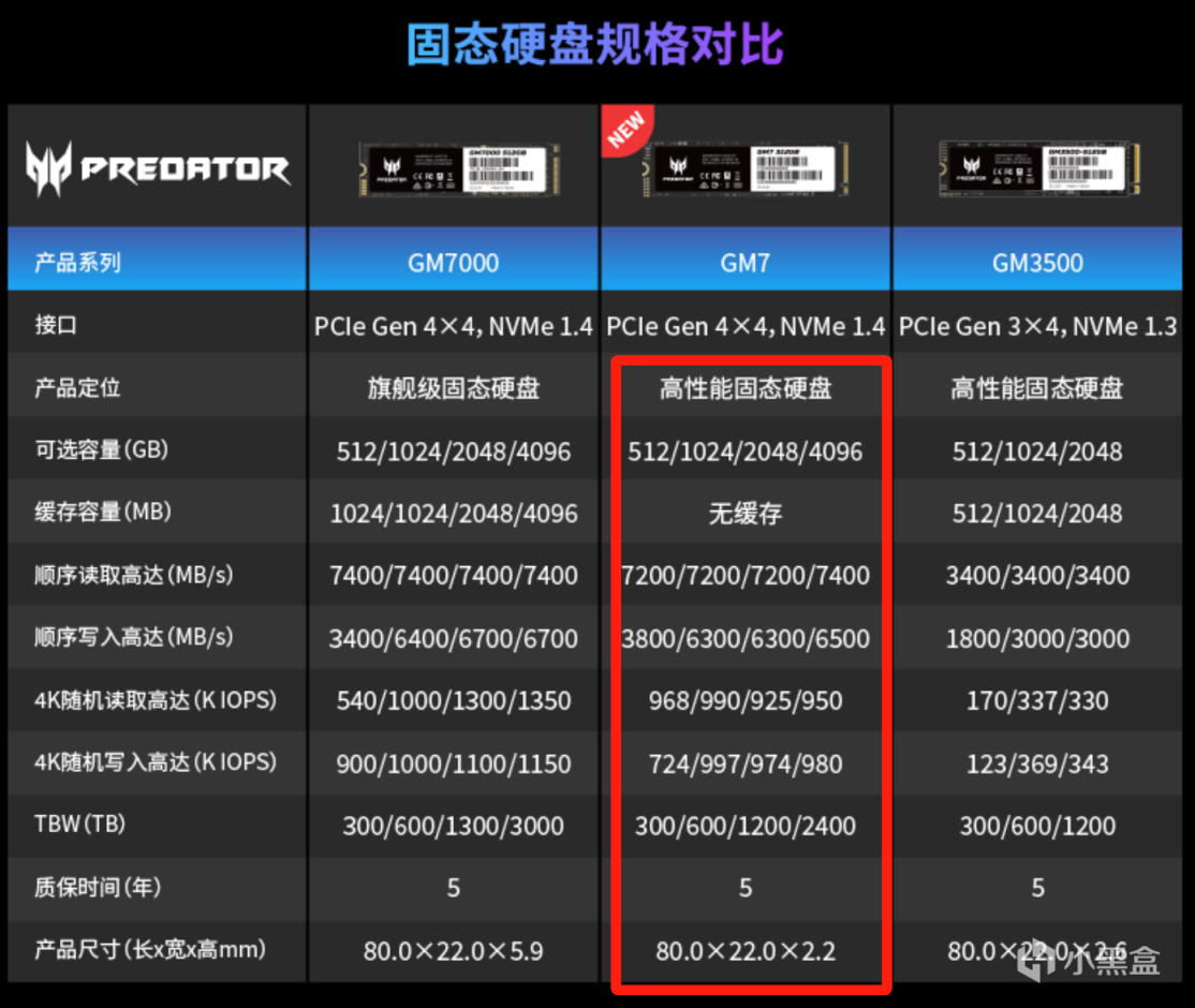 从标称参数来看 ,宏碁掠夺者GM7和致态TiPlus7100也几乎一致,均为PCIe4.0满速HMB SSD的水平,挑不出毛病,相当给力。