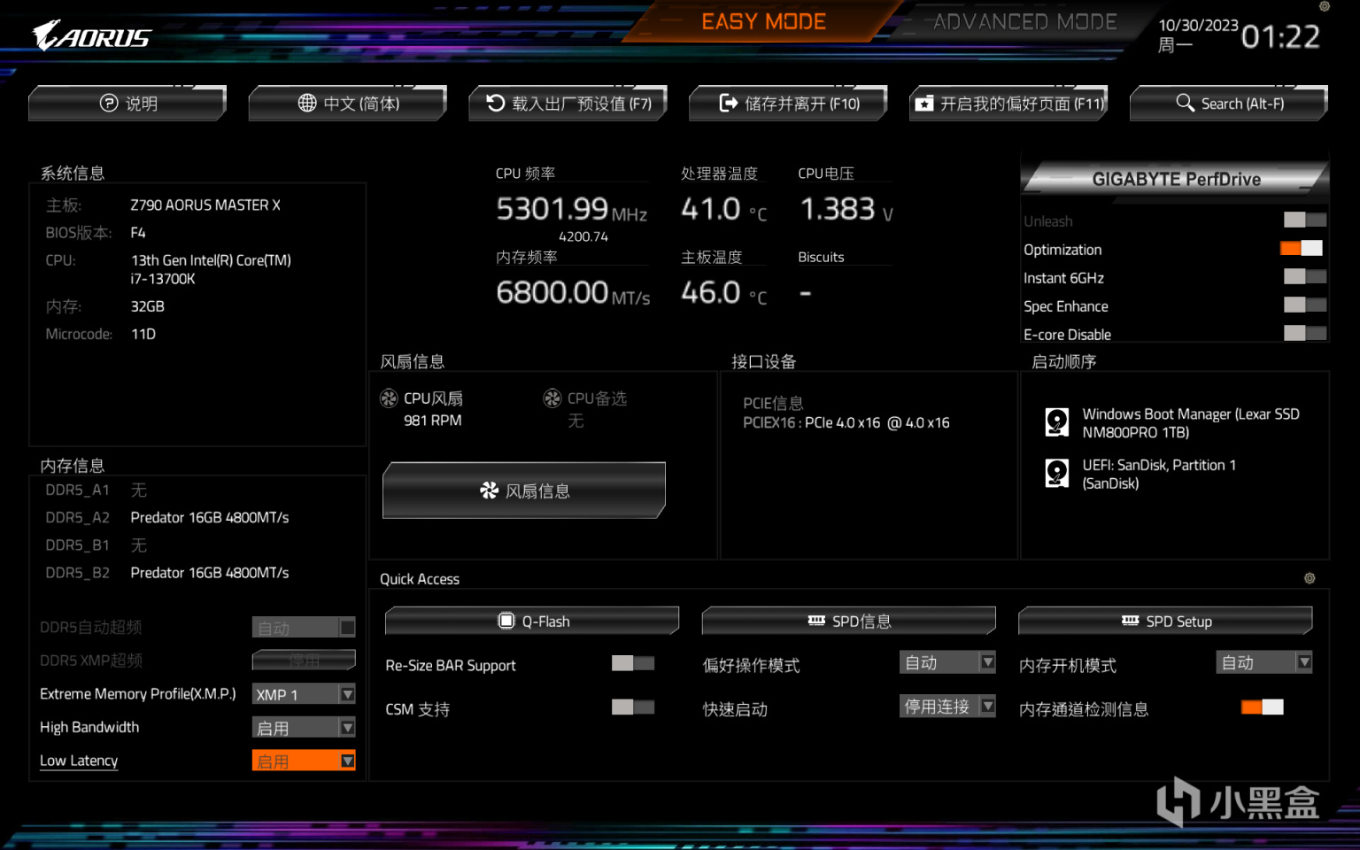 并且该模式的启用特别方便,就在BIOS首页,和XMP开关放在一块,直接就可以一键完成操作。