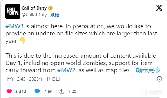 由Infinity Ward 和Sledgehammer Games 共同开发并由动视发行的第一人称射击游戏《使命召唤:现代战争3》即将发售,玩家却发现其完整游戏容量竟然多达200 GB?动视日前也在官方𝕏 上针对此议题回应了。
