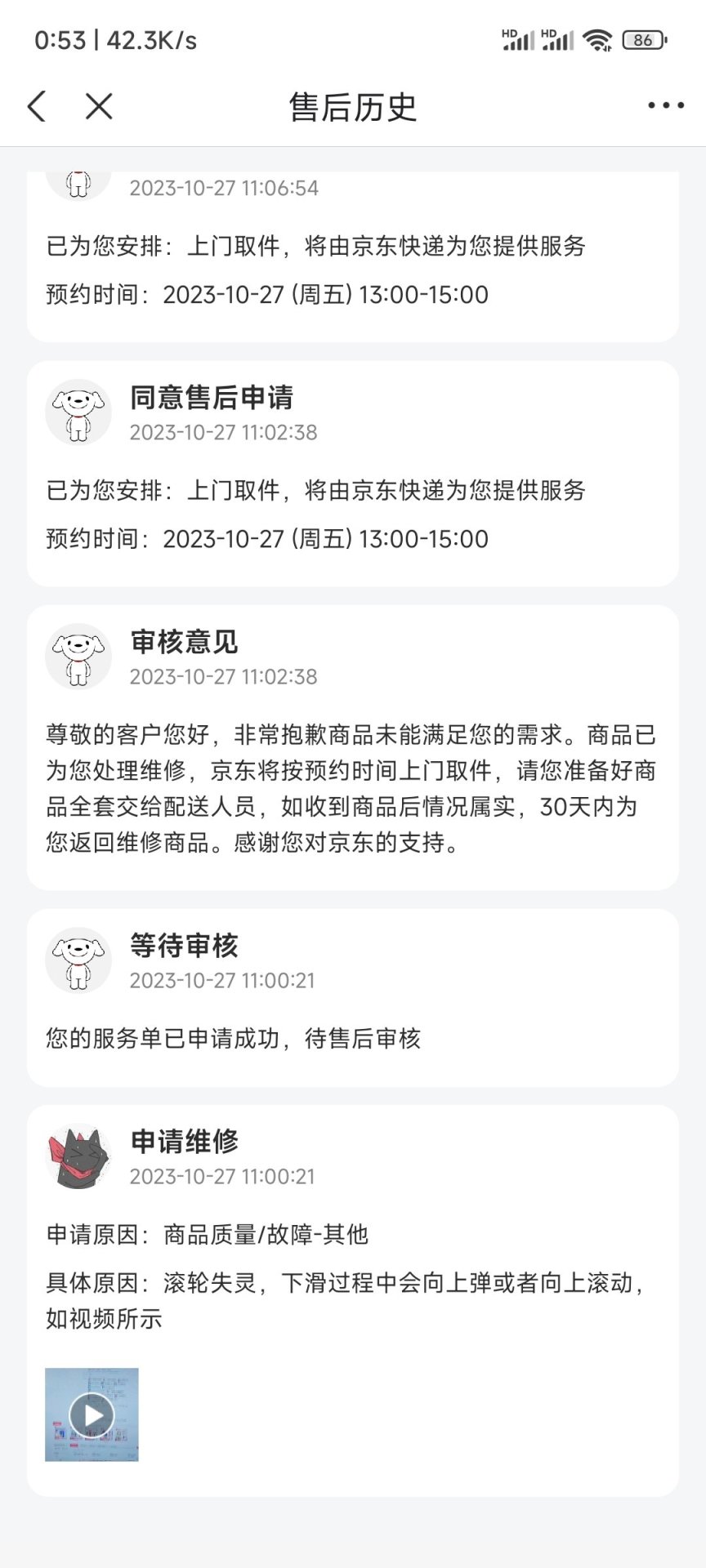 事情是这样的,我21年买了个巴蛇V2,质保期为2年(刚刚好是今年11月2号),然后10月份的时候鼠标滚轮回滚了,随后寄回京东售后处维修!