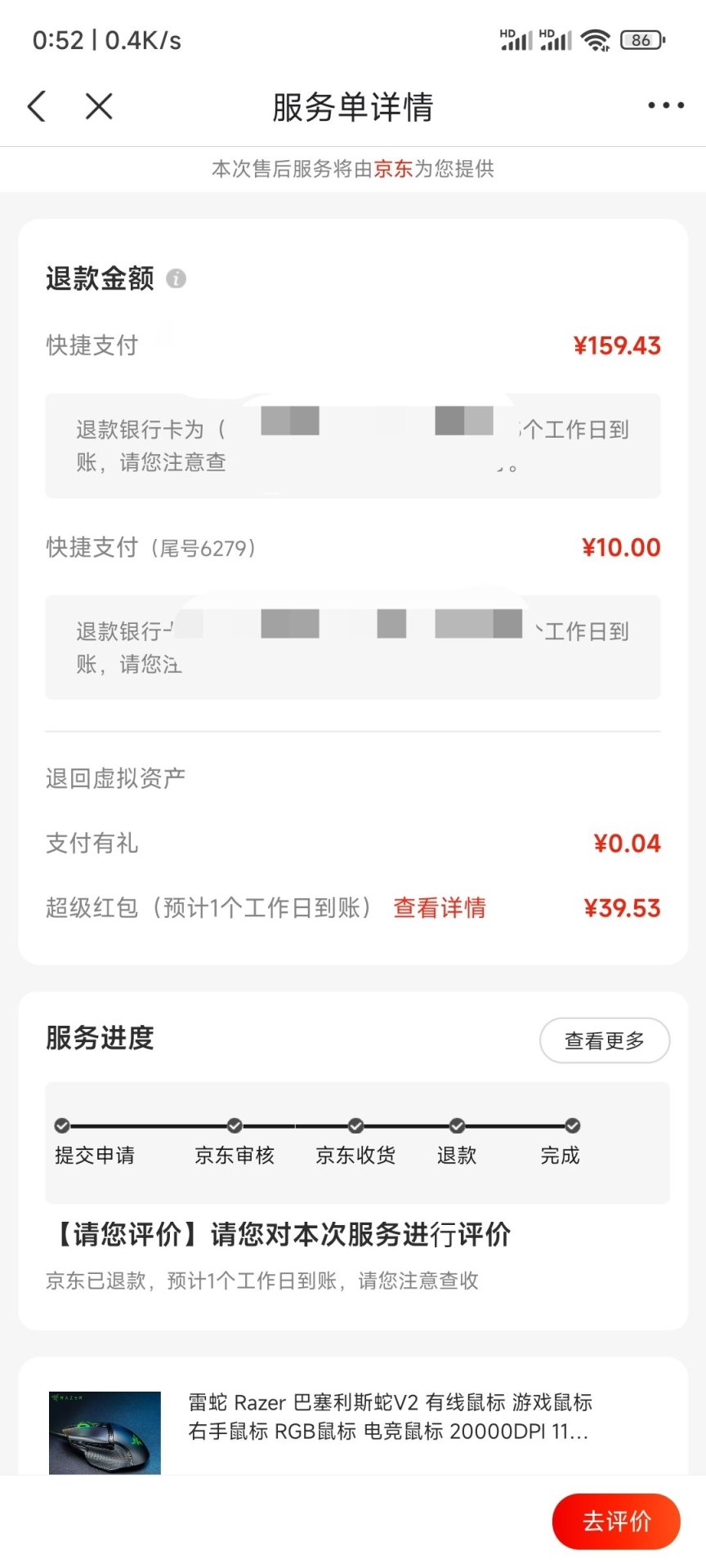 本想着修好了就继续用就是了,没想到京东给我打电话说折旧退7折的钱,我一开始想着退7折我还得重新买鼠标,还是维修好了对付着用算了。没想到客服说帮我申请全额退款!那么我只能勉为其难答应了不是。