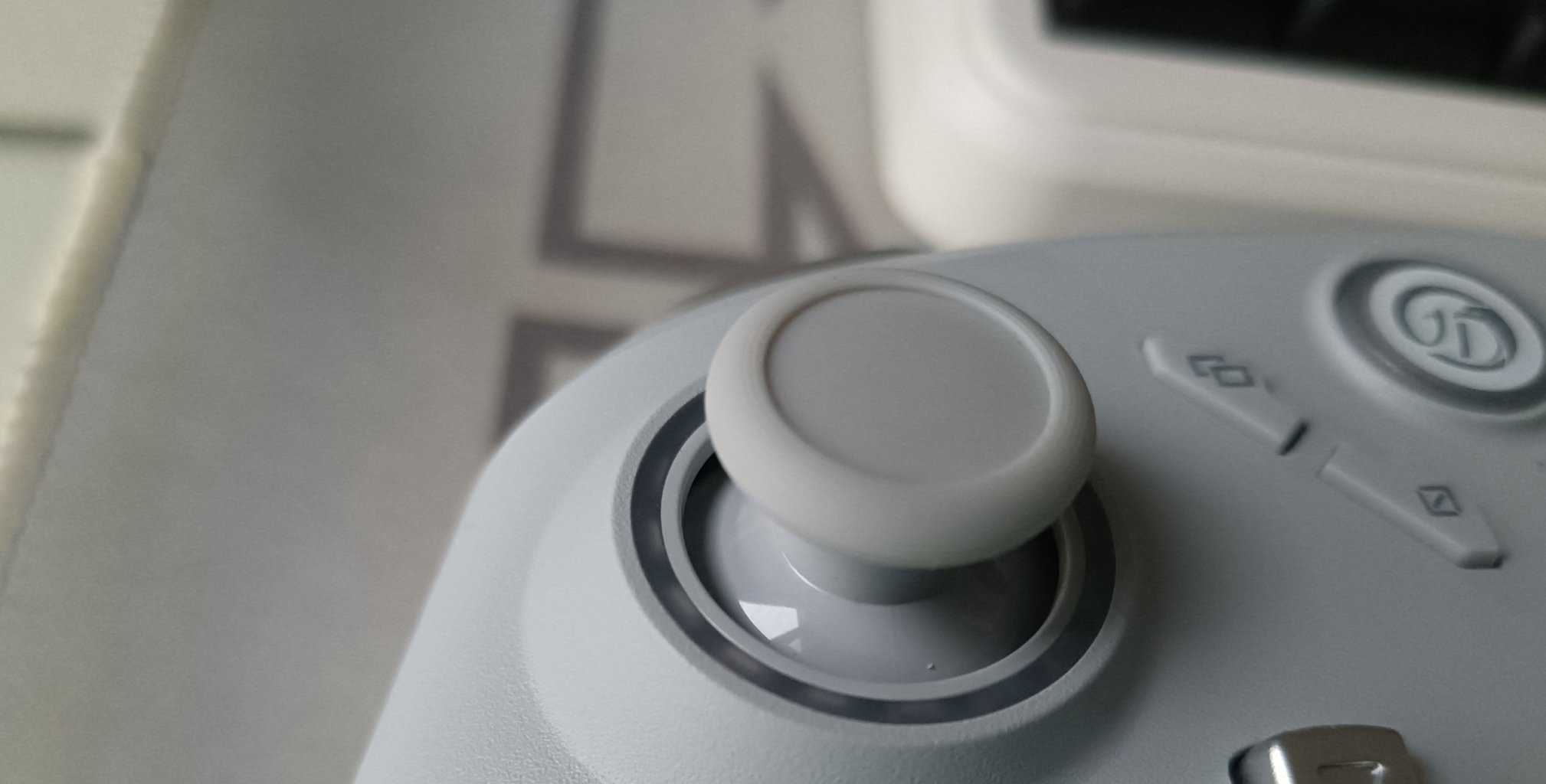 霍爾搖桿,阻尼和Xbox手柄幾乎沒有區別,搖桿帽的凹陷也很貼手。外面一圈是它的燈帶。