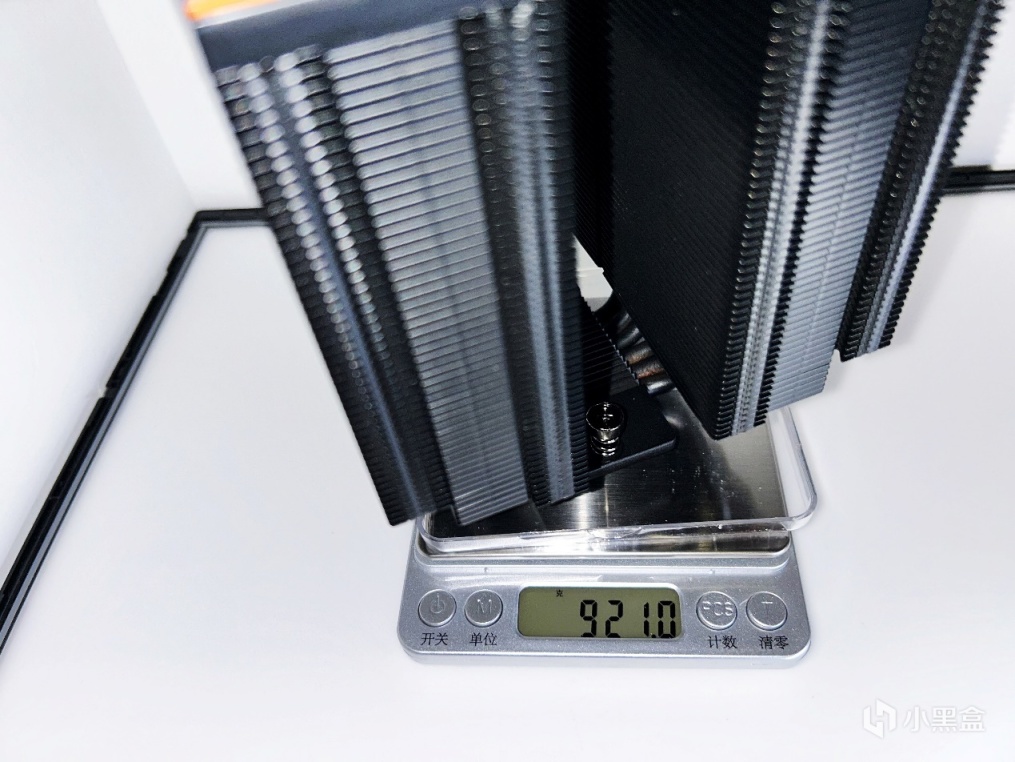 再說回散熱器,整體看上去不大,堆料確實十足,上秤散熱主體淨重爲921克。