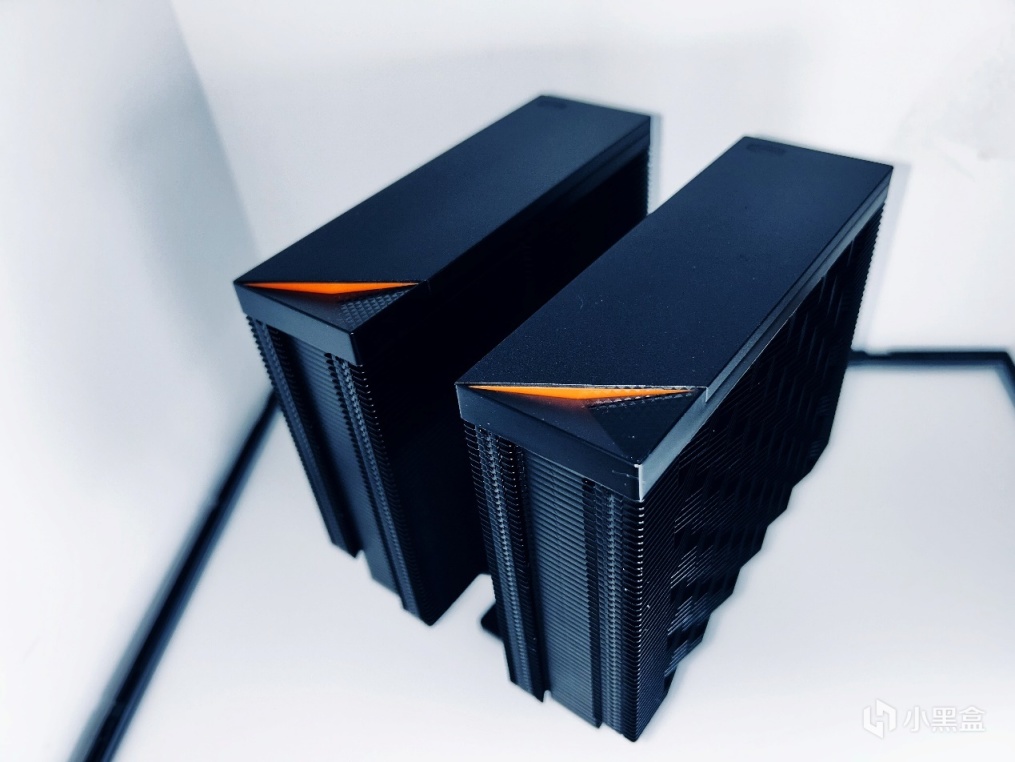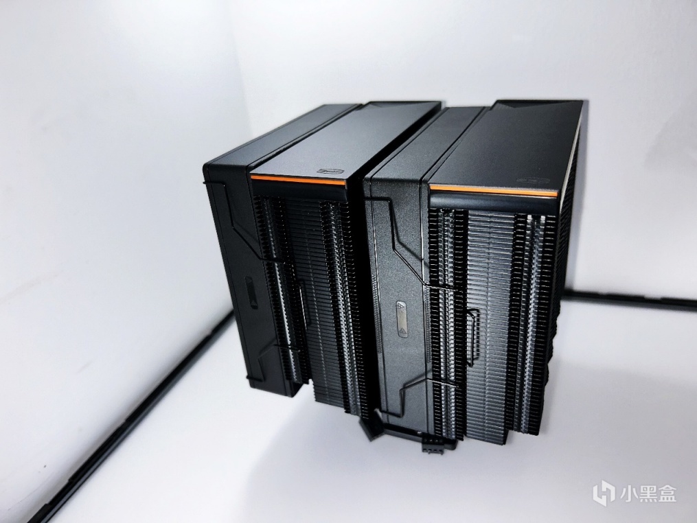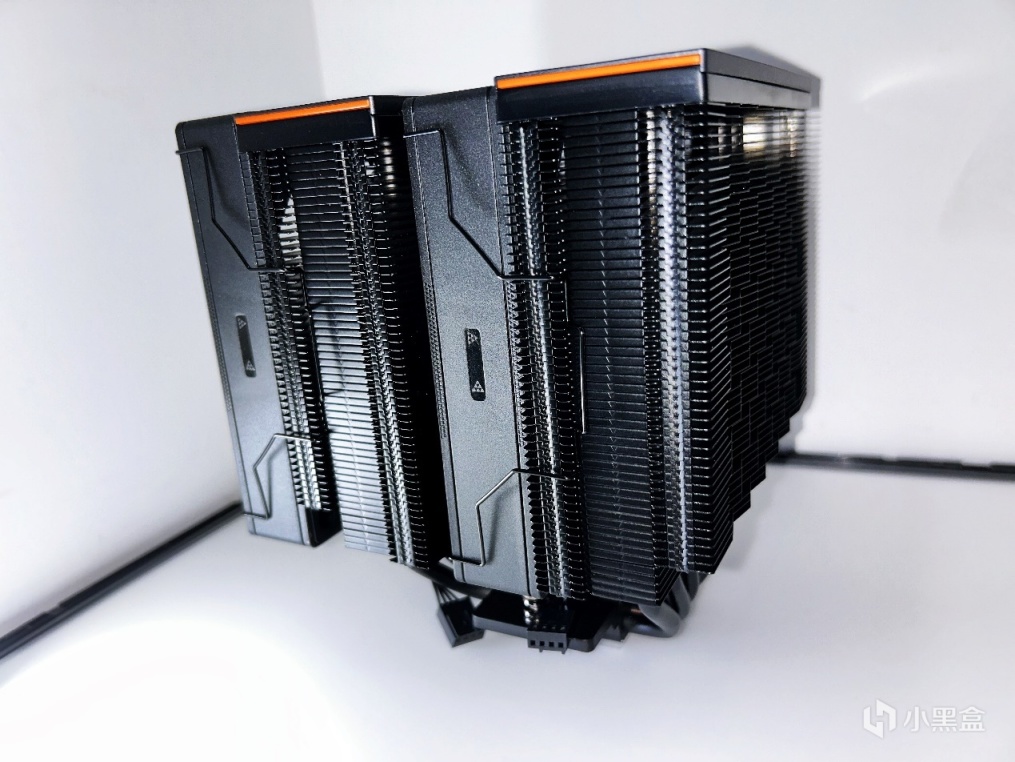 主體的散熱器鰭片上使用了扣Fin+折Fin工藝固定,54×2共108張鋁製散熱鰭片,側邊用了三角波浪矩陣設計,凹凸有致,格外醒目。風扇的安裝扣條也做了特殊優化,拆卸和安裝非常順手。