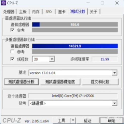CPU跑分:單核895.6,多核14321.9,性能略有小降,倒也不影響。
