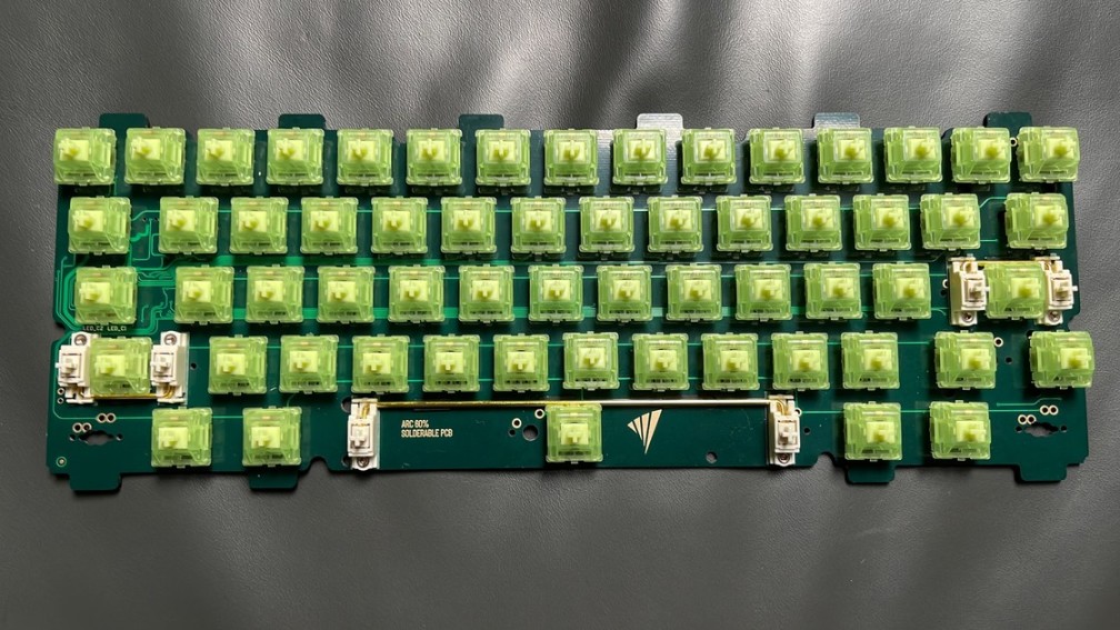 对于这句话,我只能同意一半。用市场的角度来看,ARC60的配置,其实是相当「激进」。1.6mmPCB、不开槽(Flex)设计、「隐藏」的中框、无棉的组装建议等等,这是一把「逆水行舟」的作品。
