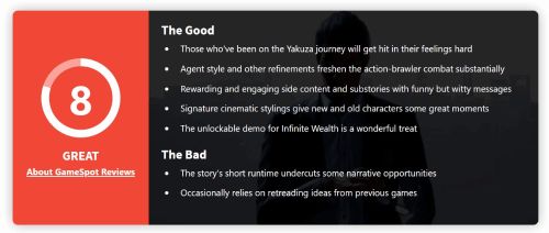 2.《如龍7外傳》媒體評測解禁,IGN7分,GS8分。