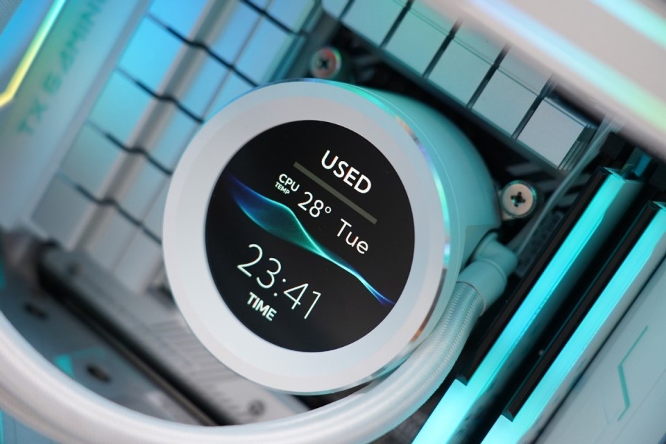 从实际的装机效果来看,先马XW360 Plus的这个2.8寸的屏幕确实是相当的醒目,平时使用的时候可以轻松观察到CPU的温度以及占用率。当然,想要显示其它内容也是完全没问题的。