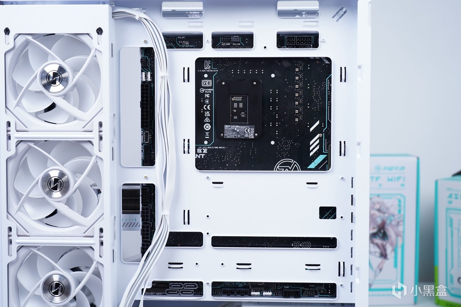 把主板安装上以后,可以看到机箱的开孔与主板的接口一一对应,接线的时候就和平时走背线基本一样。