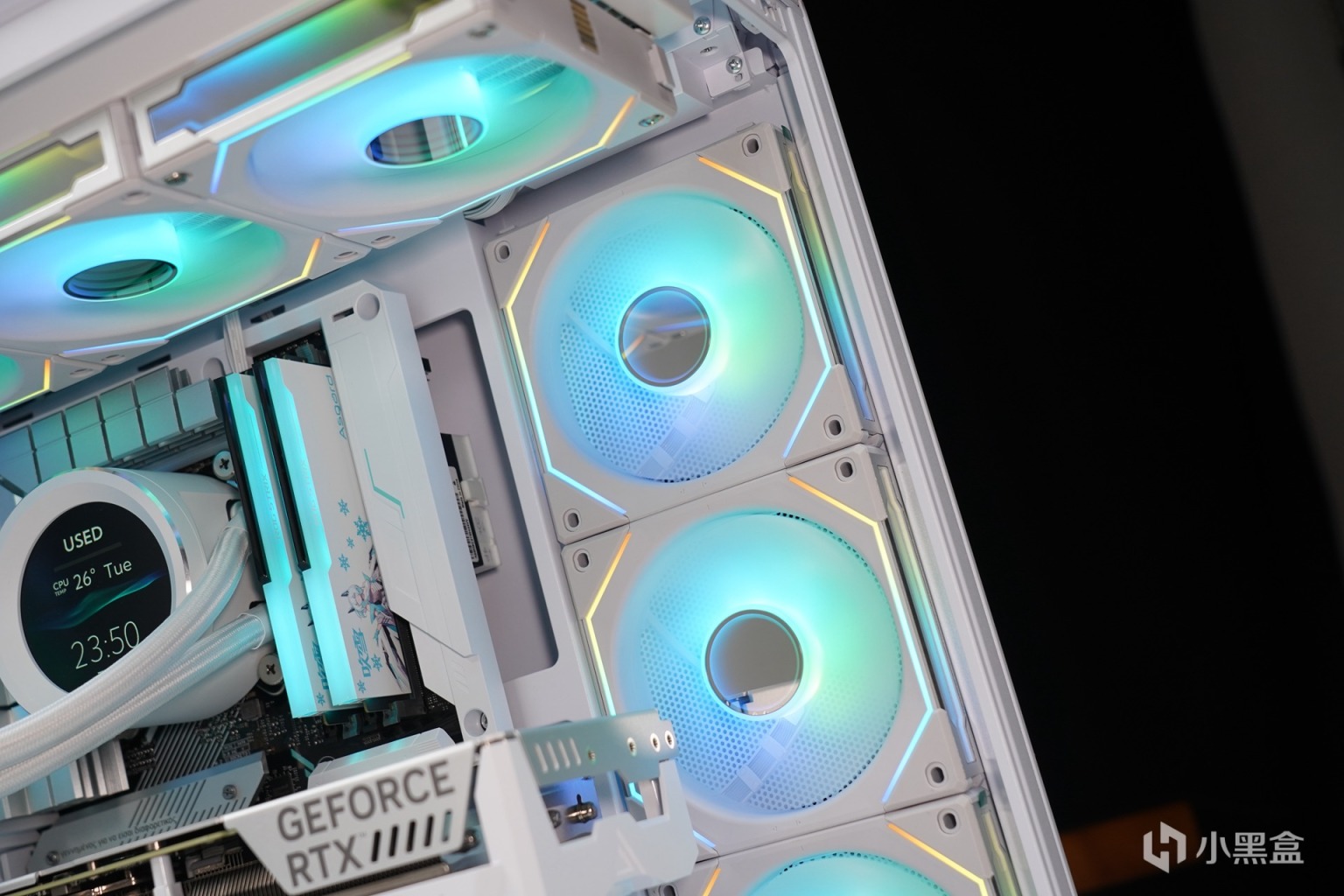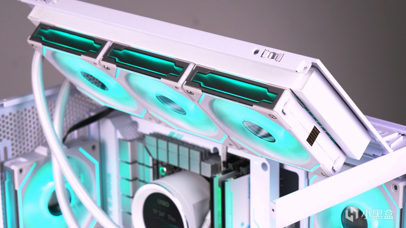 得益于独立的顶部水冷架设计,我们在装机的时候可以先把冷排装上再把水冷放到机箱内进行冷头的安装。