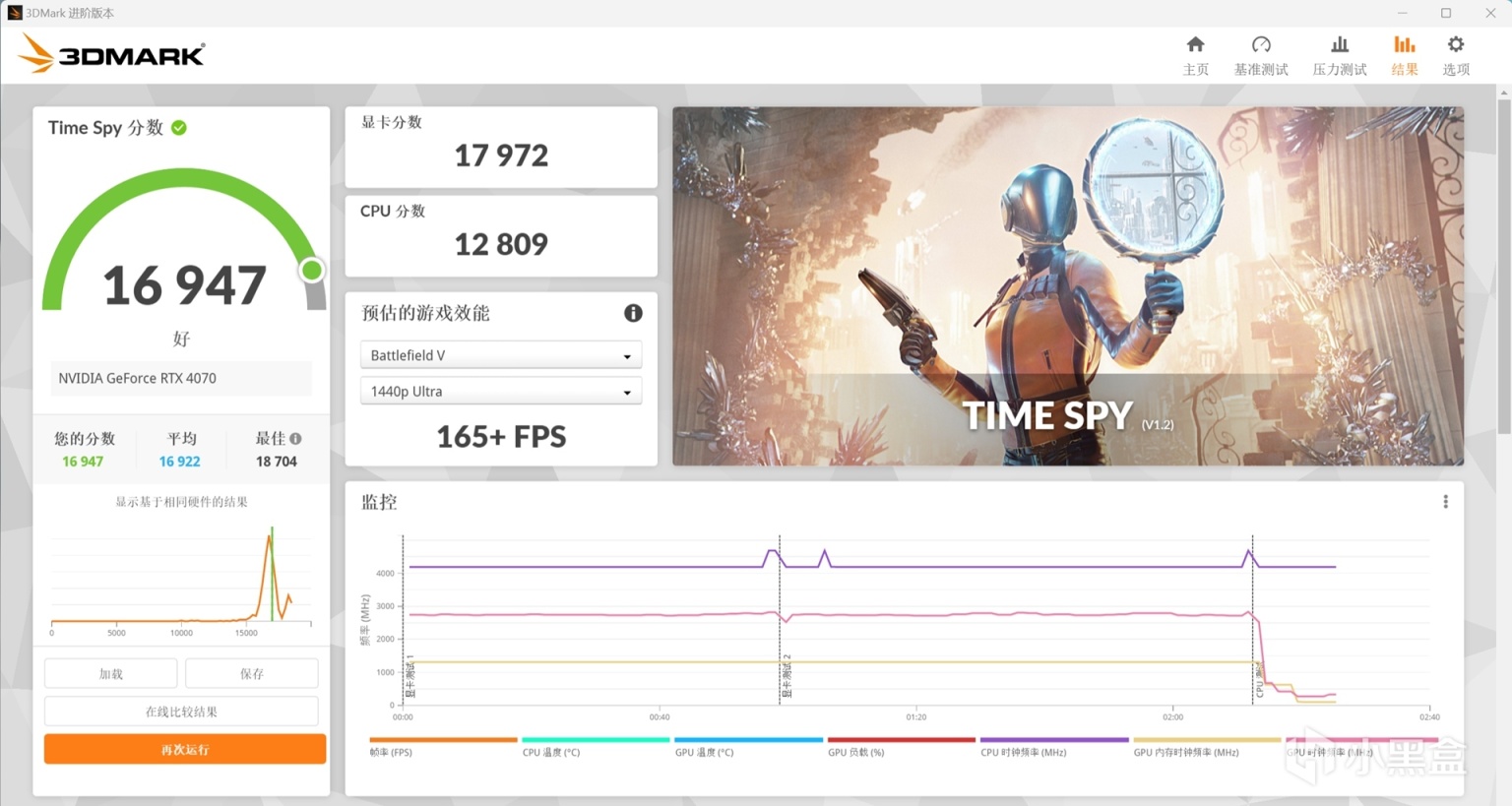 然后是3DMark的TimeSpy测试项目,得分为16947。