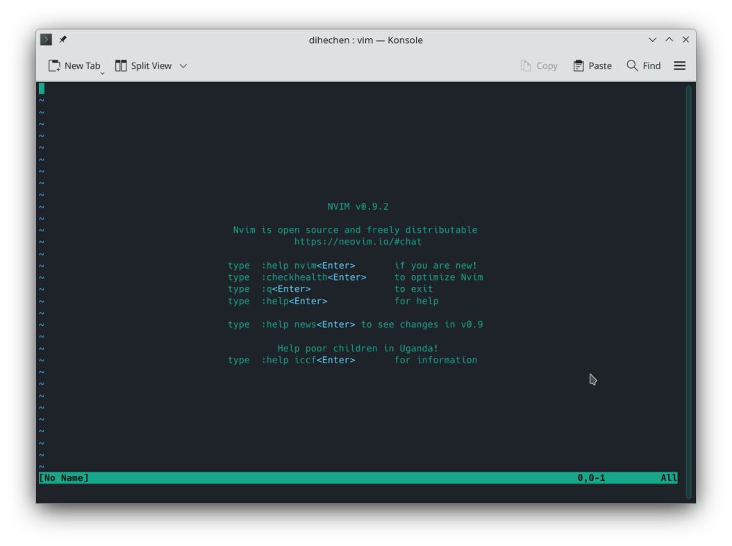 接下来我们需要安装一个在终端使用的文本编辑器, 方便我们快速改动一些配置文件, 这里我们使用更现代化的 neovim, 我们可以使用命令 sudo pacman -S neovim 安装, 如果你之前接触过 linux 操作系统, 你一定不会对 vim 感到陌生, neovim 则是 vim 的现代化分支, 有 vim 不具备的强大特性, 安装好了之后我们可以通过软链接的方式将 vim 设置成 neovim 的别名(比写进 ~/.bashrc 和 ~/.zshrc 好), 可以用命令 sudo ln -s /usr/bin/nvim /usr/bin/vim 创建软链接, 随即输入vim, 能看到 neovim 的欢迎页面。