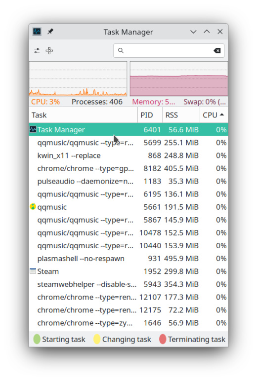 先安装一个任务管理器吧!使用命令 sudo pacman -S xfce4-taskmanager 安装。