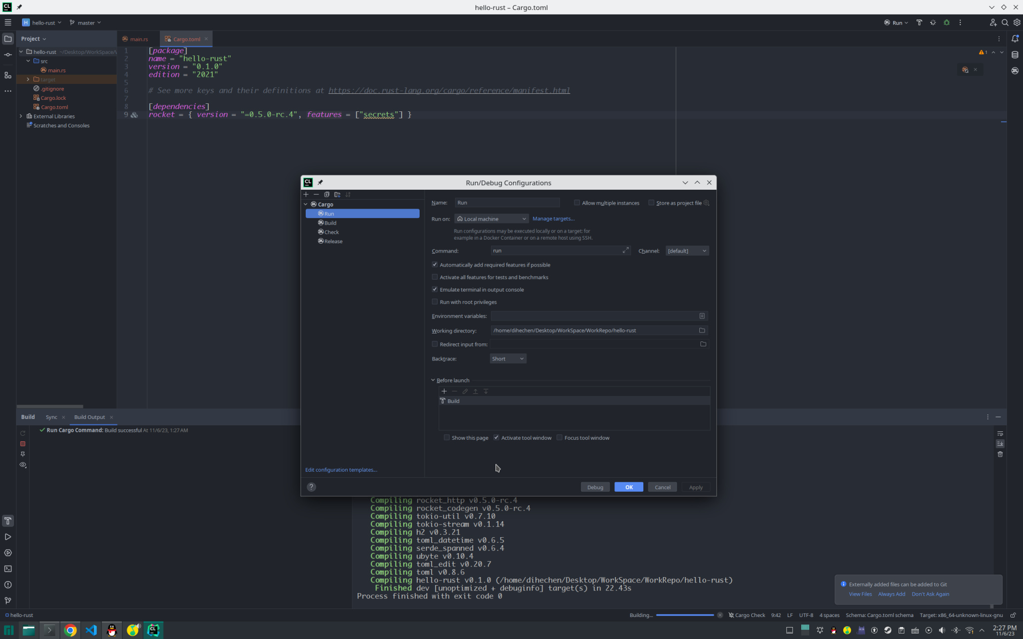 Clion: 用来写 rust, 安装命令: yay -S clion