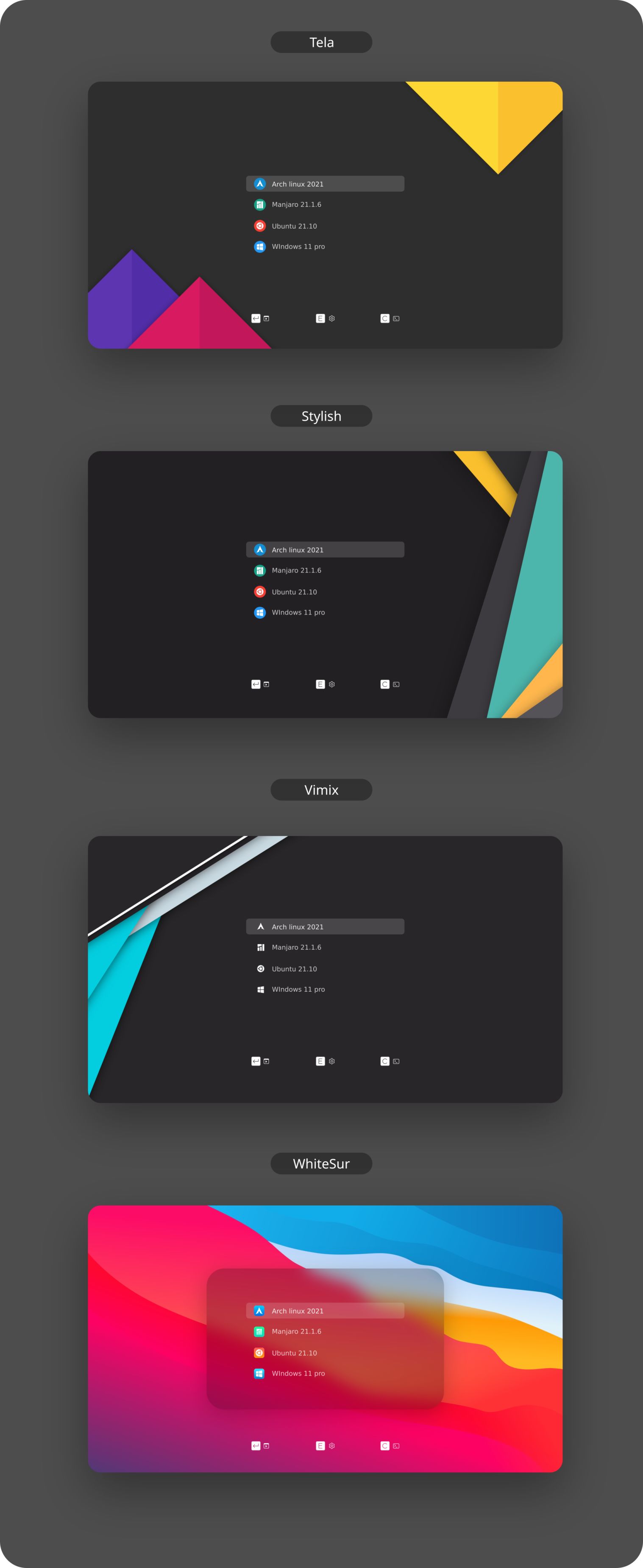 vinceliuice/grub2-themes 的 4 个主题的预览