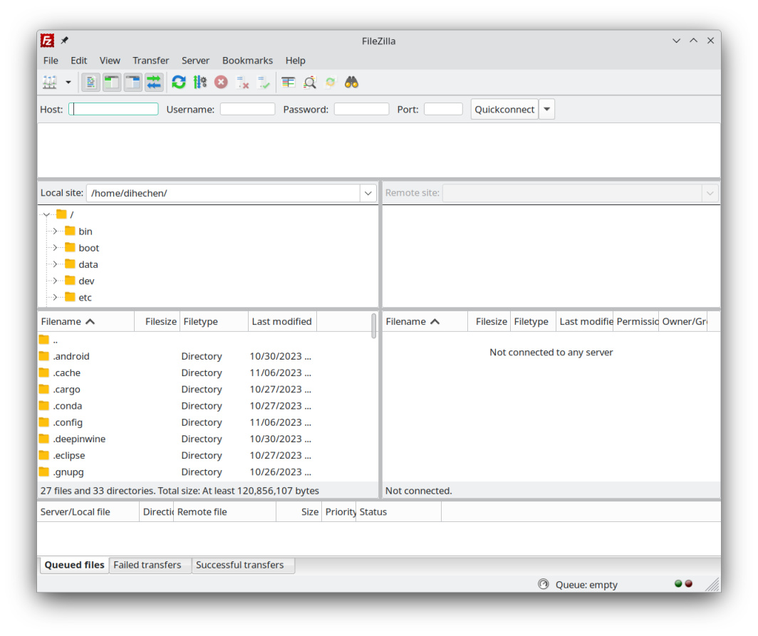 FileZilla, 用于在个人电脑和服务器之间复制文件