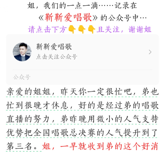 情绪调动到位后,“弟弟”就要给出自己需要“姐姐”的地方了,自己在公司内部/唱歌比赛的网络投票中竞争不过别人,并且这时“姐姐,弟弟唯一的希望就是你了”......