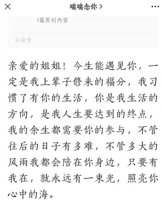 这些推文往往字体硕大,保证老人们看着舒心。开头五个字,无一例外是“亲爱的姐姐”,把自己包装成了给这位“好姐姐”特地写就的一封信。