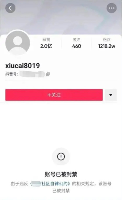 翻看秀才的抖音账号,官方对封号的解释也语焉不详,一句“该账号违反了《社区自律公约》”就浅浅带过。