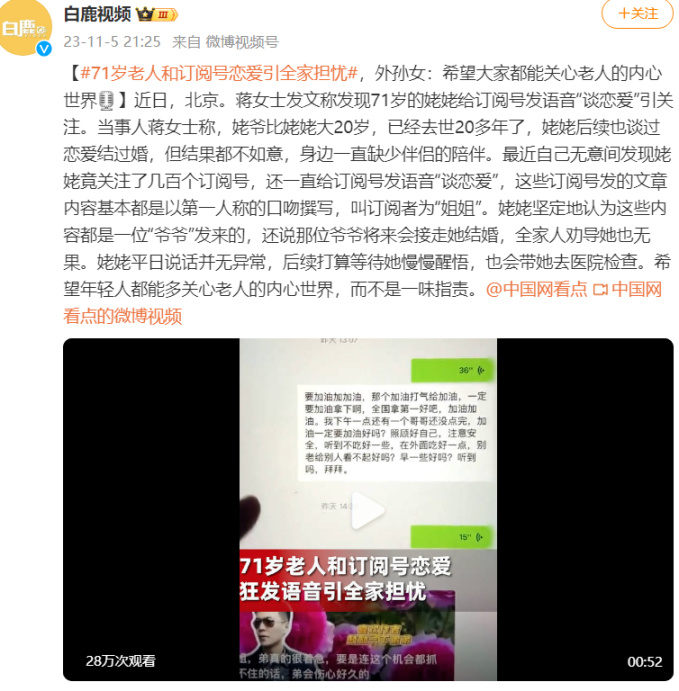这两天,已经有不少子女发现家里老人在和公众号发语音谈恋爱了。