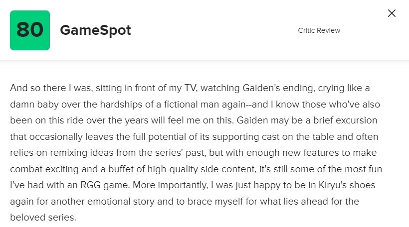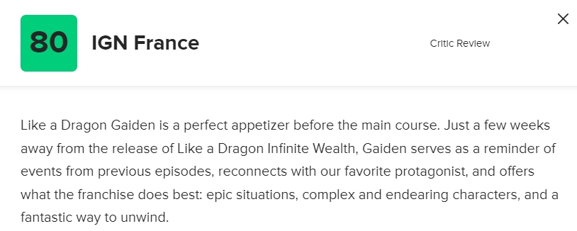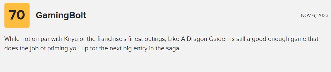 虽然不能与《如龙》或该系列最精彩的游戏相提并论,但该作仍然是一款足够优秀的游戏,可以让你为该系列的下一部大作做好准备。