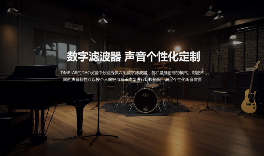 DMP-A8的DAC设置中分别提供六组数字滤波器,各种量身定制的模式,对应不同的声音特性可以按个人偏好与音乐类型进行切换搭配,满足个性化听音需要。