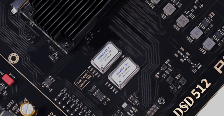 DMP-A8音频解码电路配备了两个超低相位噪声的飞秒级高精度时钟(45.1584MHz和49.152MHz),分别对应解码44.1KHz和48KHz倍频采样进行管理,有效抑制抖动,保证了数/模音频信号的高精度转换与解码,为整机模拟音频输出提供了超高动态与解析力,再现音乐录音现场的真实声场与声音细节。