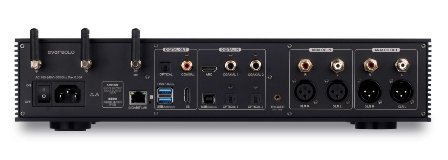 3、作为高性能前级支持模拟输入:XLR、RCA。本机模拟前级输出提供了高保真的 RCA 与 XLR输出,可以直接与有源音响或者纯后级系统搭配,为您提供灵活的器材搭配方案和各种高质量的音乐聆听方式。