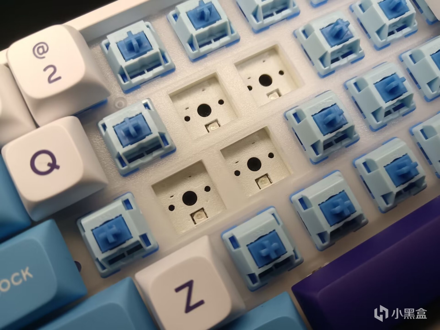 珂芝K68Pro采用的是一种配色对应一种轴体,弥豆紫搭载的是相逢轴,这次我手里这把K68Pro搭载的轴体是碧蓝海同款配色的相聚轴。
