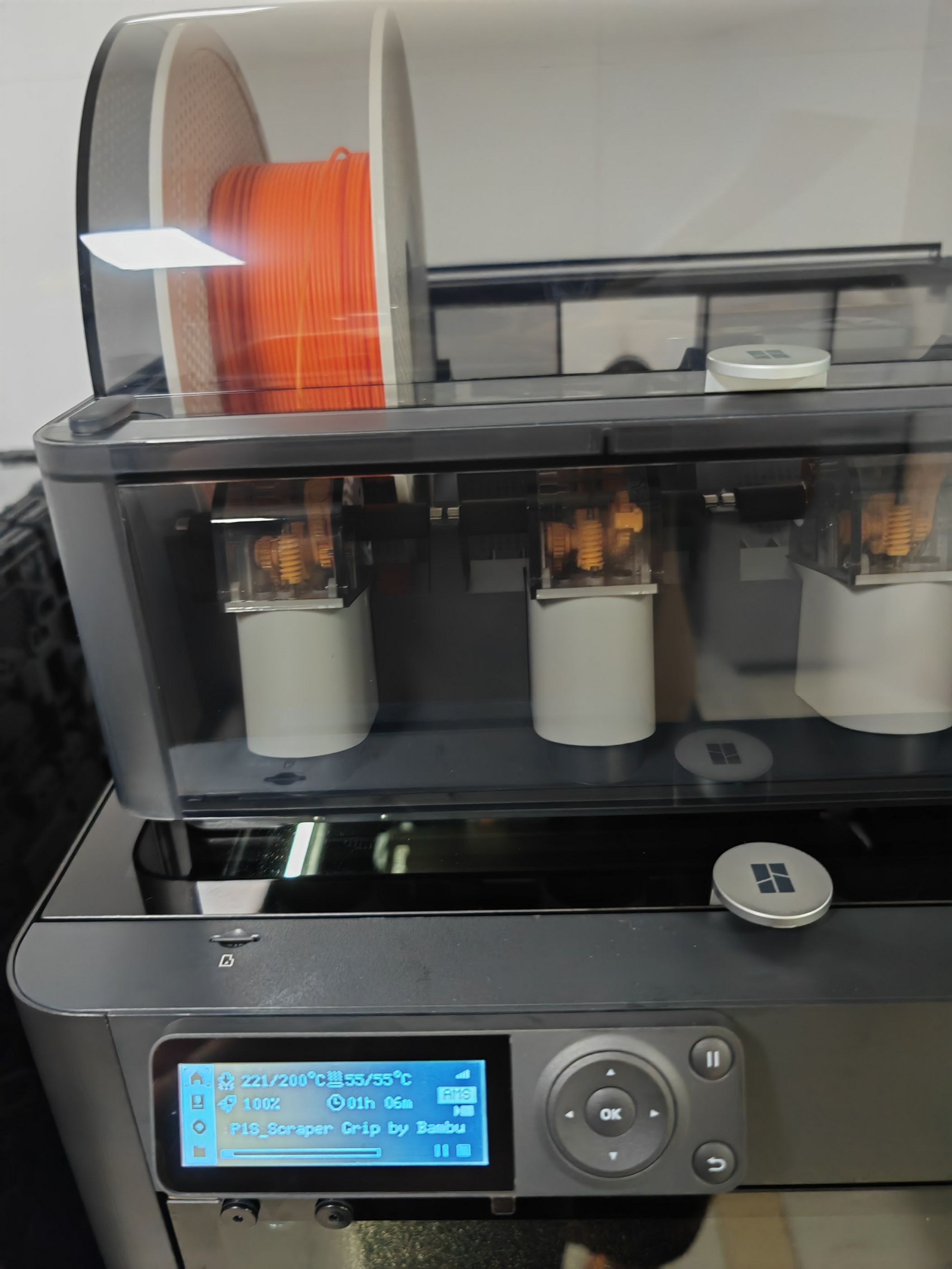 当你的耗材用尽之后,ams可以自动切换到下一卷耗材进行打印。这点还是非常的爽