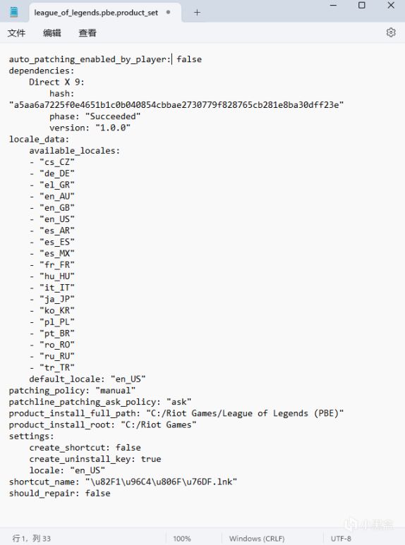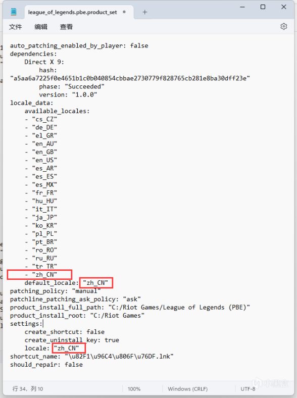 將拳頭啓動器改爲中文之後,我們還需要將英雄聯盟PBE客戶端改爲中文。根據路徑找到遊戲配置文件: