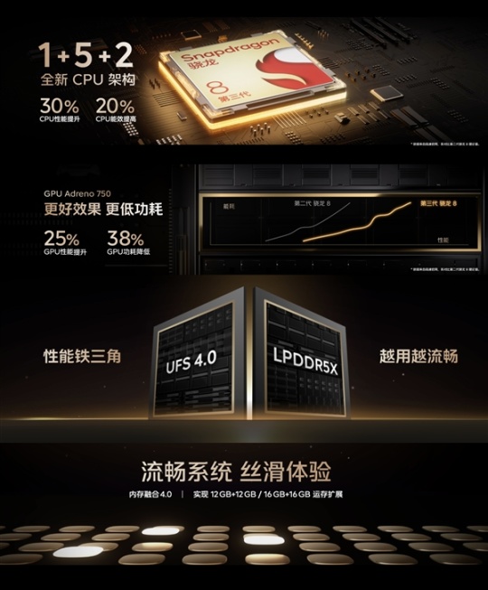 全系标配高通骁龙8 Gen3移动平台,搭载了自研电竞芯片Q1,能够实现超帧、超分并发。