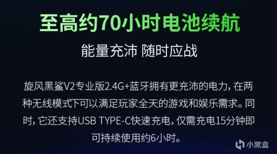 如果是忘了充电也不用慌,雷蛇这一代耳机搭载了全新的快充技术,充电15分钟即可有持续6小时的续航,换算一下就是“充电五分钟。通话两小时”。麻麻再也不用担心我打游戏耳机没电了。同时可以看到,旋风黑鲨V2专业版的接口为Type-C,而非前代的Micro接口,可以说拿一根C口的线,就足以给所有外设设备充电(要是用的是GPW当我没说)
