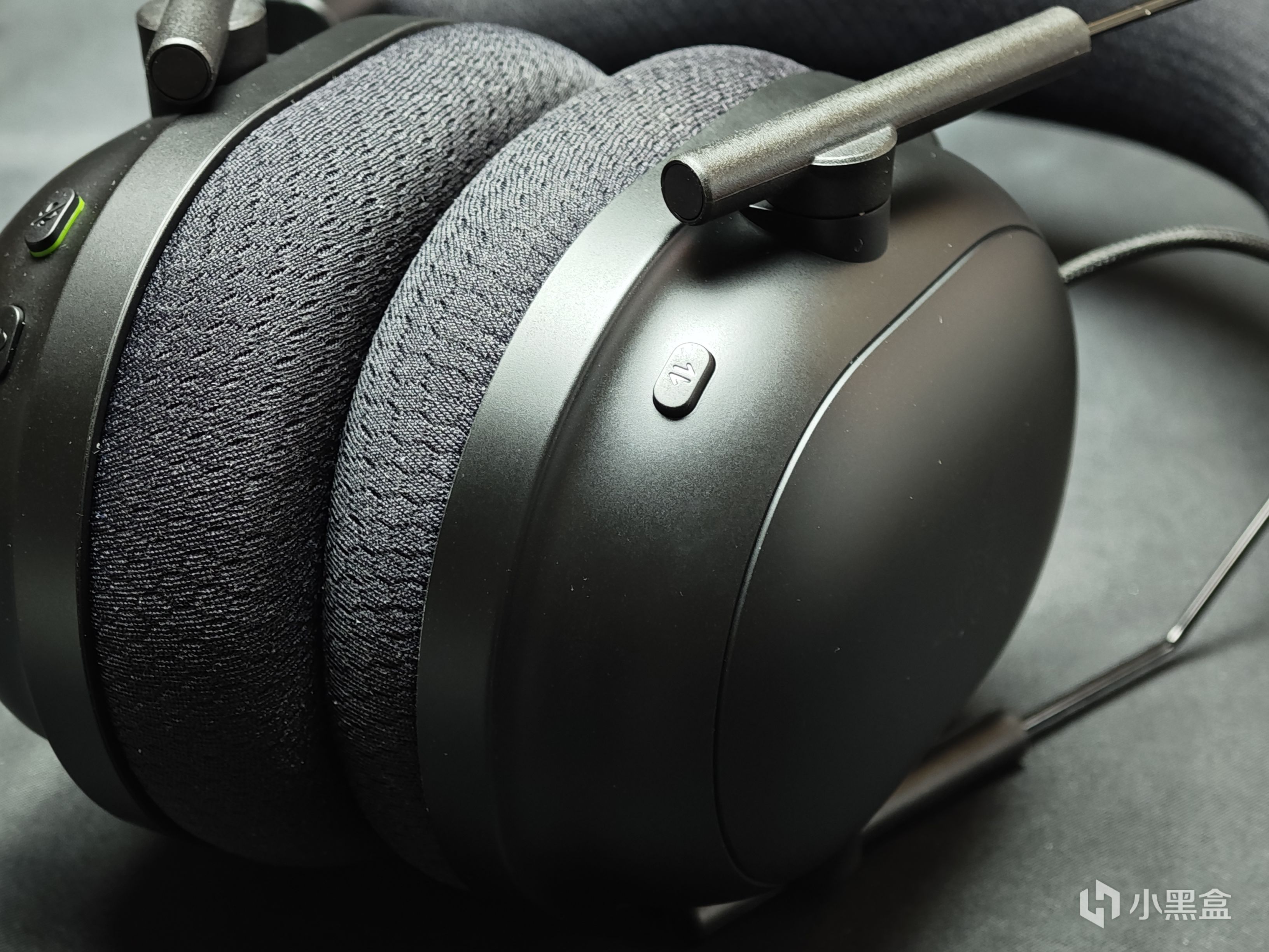 耳罩上面最引人注目的就是这个旋钮,实际上也确实是起到音量旋钮的作用,而不是一个简单的装饰,整体手感上没有一点刻度感,或者应该称为无极旋钮,但比较遗憾的是不支持按下一键静音,只能通过旋转来增大/减小音量。