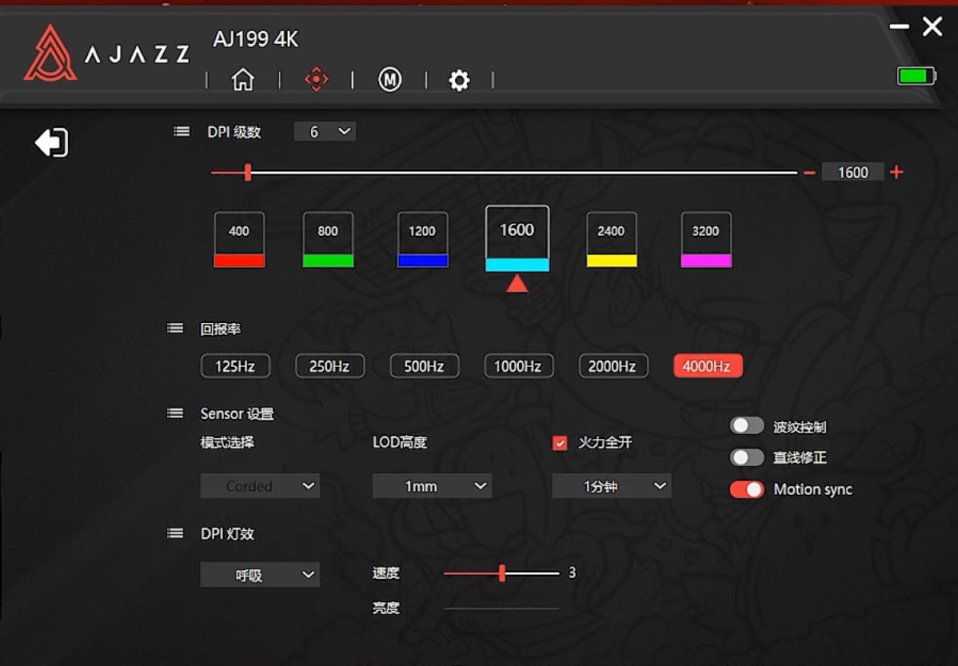 傳感器方面這次AJ199 4K 依舊使用的是PAW3395傳感器