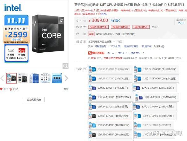 由於雙十一的促銷活動,兩款CPU的價格都降到了2599元,所以在CPU方面,兩者並沒有什麼優劣之分。但是,如果考慮到主板和內存的搭配,那麼i7-13790F就有了明顯的優勢。因爲i7-13790F可以使用TUF B660M 重炮手主板,這款主板的價格只有999元,而7800X3D則需要使用TUF B650M 重炮手主板,這款主板的價格高達1269元,兩者相差270元。另外,i7-13790F可以自由選擇D4或D5內存,而7800X3D則只能使用D5內存,這也增加了用戶的成本和限制了用戶的選擇。所以,從整機搭配的角度來看,i7-13790F更加靈活和經濟。