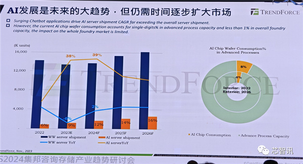 因此,我们可以看到,2022年AI晶圆的销售额在整个市场的占比就已经达到了4%,预计到2026年将翻倍增长至8%。