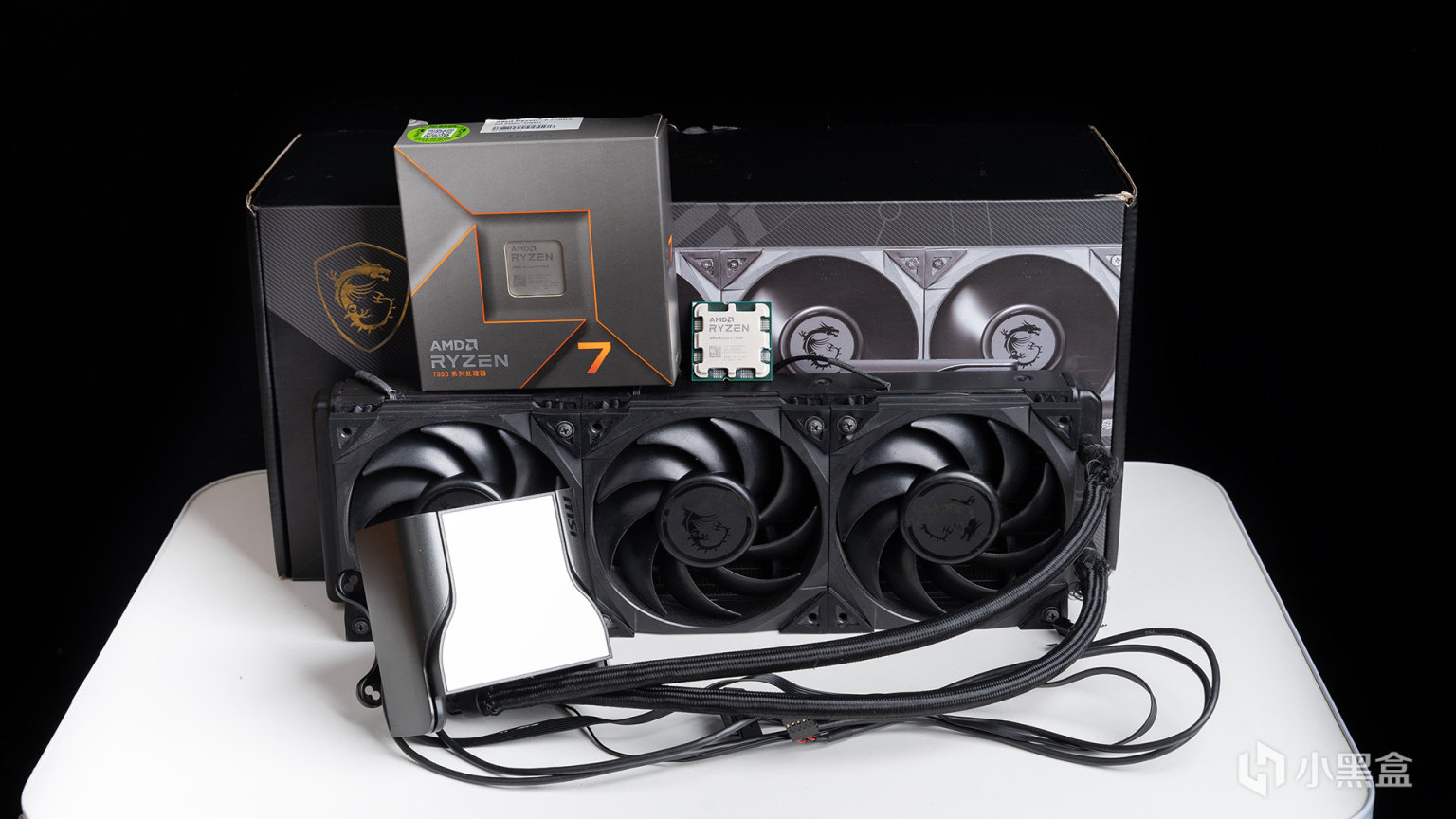 用来压制锐龙7 7700X的CPU散热器是微星MEG CORELIQUID S360,属于目前微星旗下的旗舰级水冷产品,冷头外观采用镜面形式的2.4英寸IPS显示屏,可监测硬件的运行情况,内置水泵方案是第七代Asetek水泵,性能强劲可压制高端CPU型号。