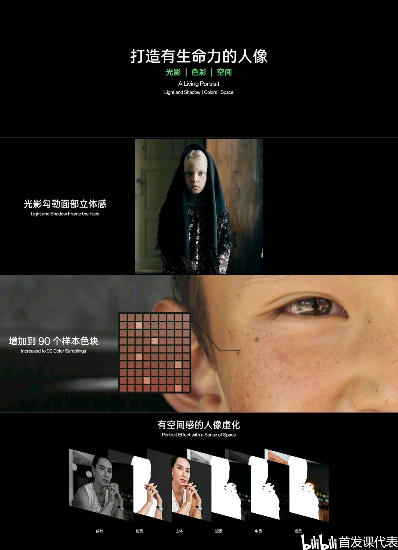 在人像摄影方面,超光影图像引擎号称“让人脸更立体”,OPPO 的影像实验室将肤色的样本色块从 2 个颜色扩容到 90 个,能够“准确还原肤色特点”;自然人像虚化引擎也实现了内渐变,模拟光学的虚化效果。
