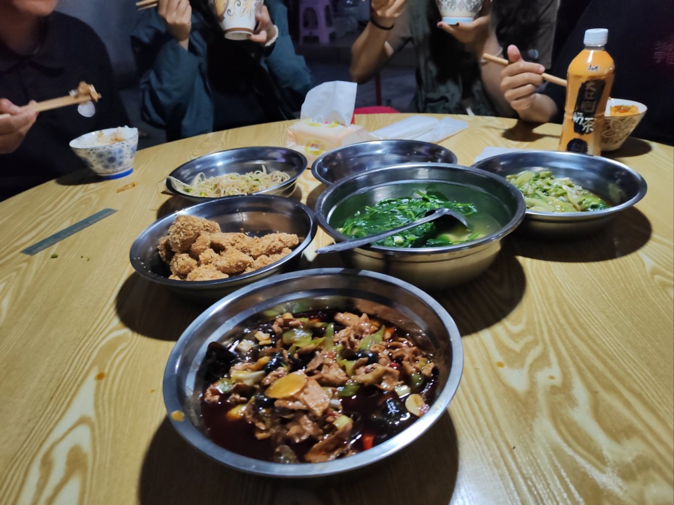 晚飯,在我們的據理力爭之下,師傅終於不做豌豆尖了,然後第二天繼續豌豆尖(已經崩潰了我確實很喜歡但是也不能天天喫啊